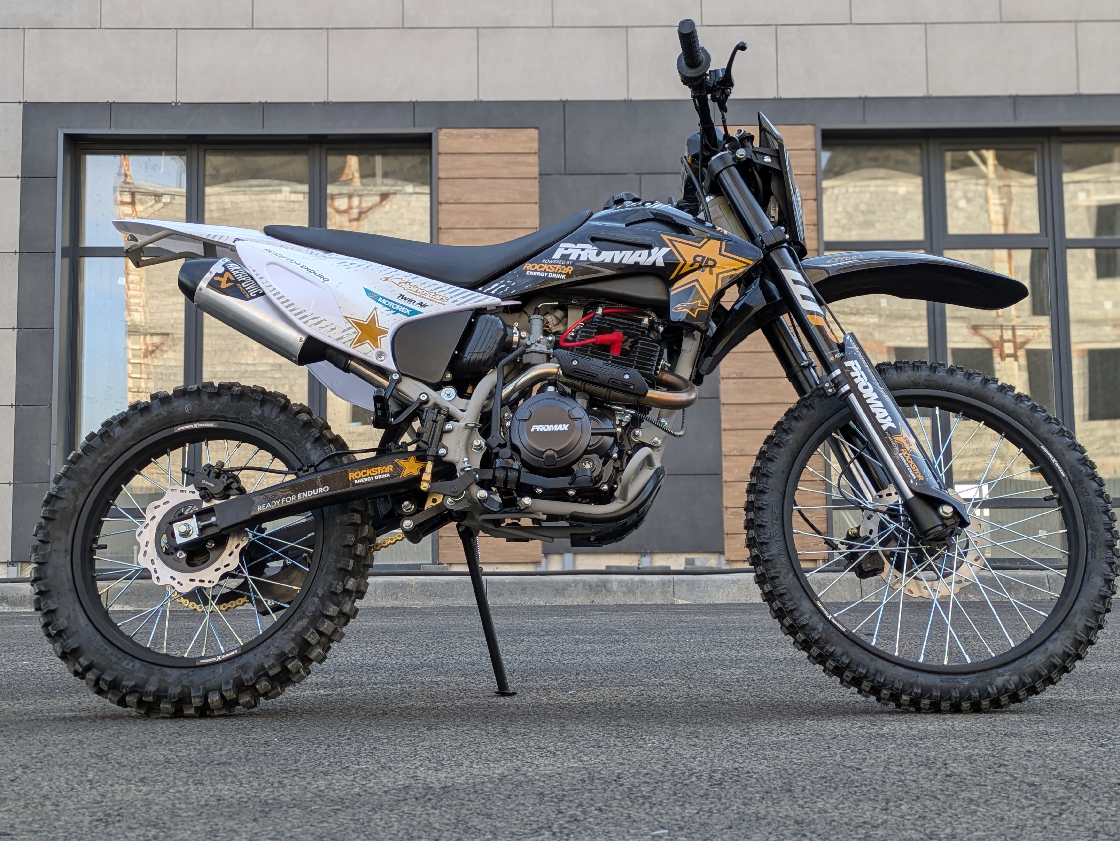 Новая модель PROMAX MX280 для тех кто хочет больше! Больше скорости! Больше мощи! Больше адреналина! Встречайте PROMAX MX280 – покорителя бездорожья ! PROMAX MX280 - это выбор как продвинутых новичков, так и опытных райдеров. Мощный и надежный двигатель ZS 172FMM-3A (CB250-F) с воздушным охлаждением и 5-ступенчатой трансмиссией в паре со спортивным карбюратором Nibbi PZ30 и выхлопом Akrapovic Exhaust System гарантируют приятный выхлоп, стабильную работу и мощность 24 л.с. Рычаг сцепления имеет флажок для легкого выжима сцепления и правильного положения троса для максимального комфорта и полного контроля работы двигателя.